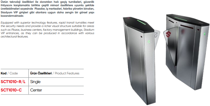 SCT 1001 R/L/C SERİSİ HIZLI GEÇİŞ TURNİKELERİ